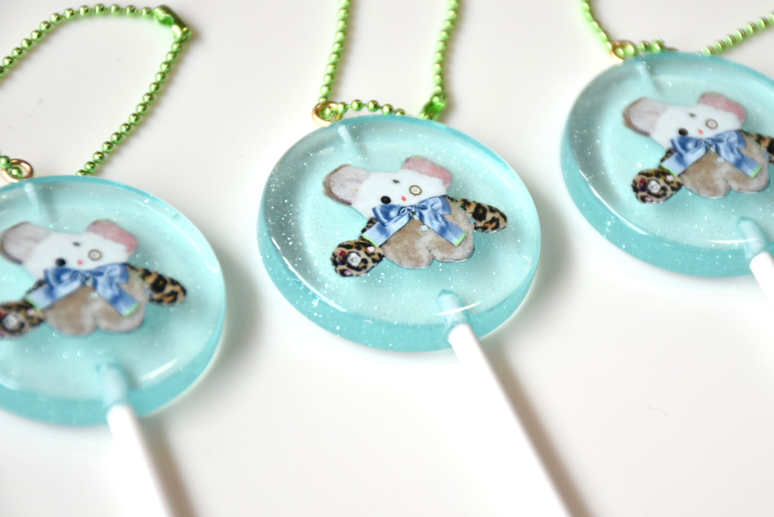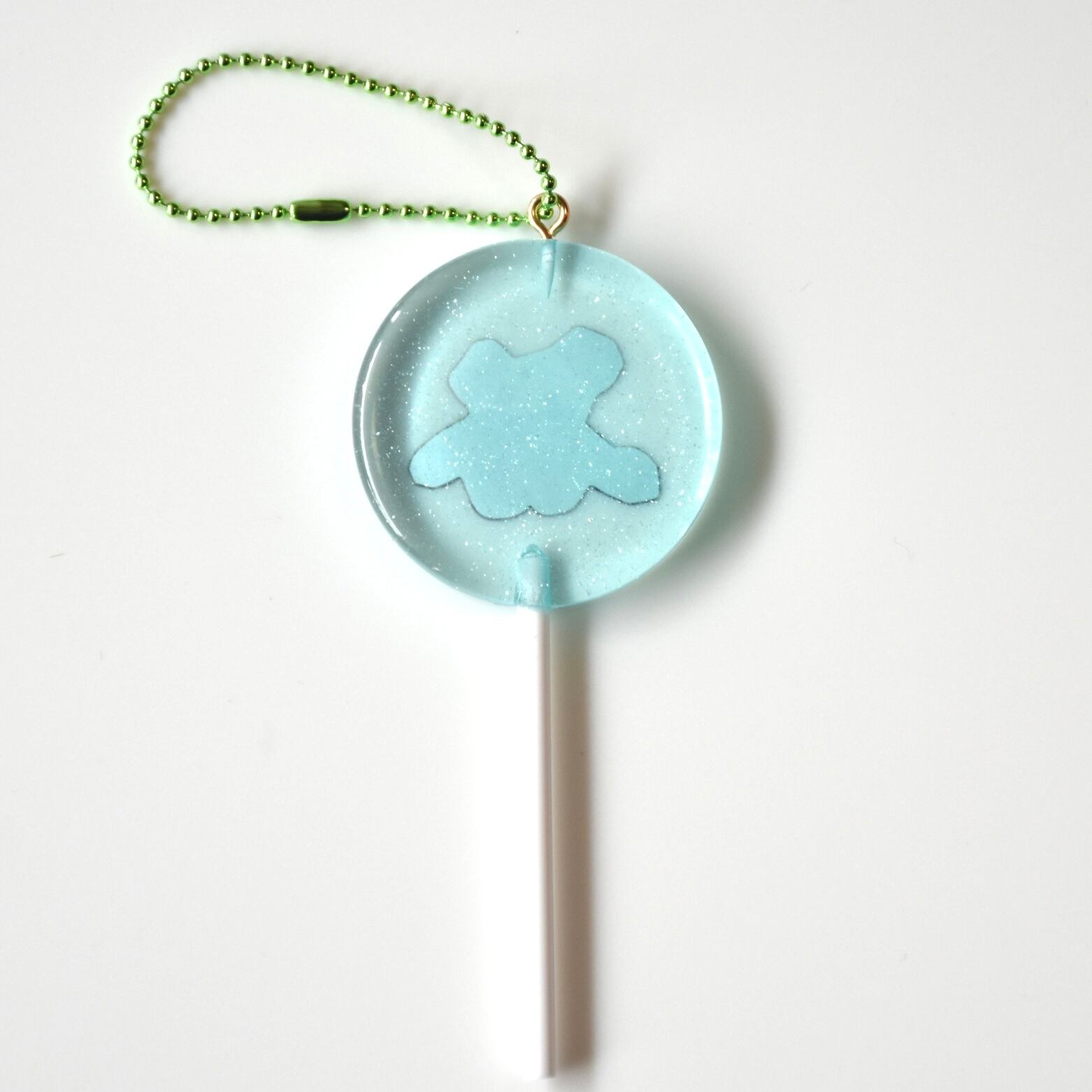食べれそうなあめちゃんキーホルダー。キラキラしてます。ソーダあじ?